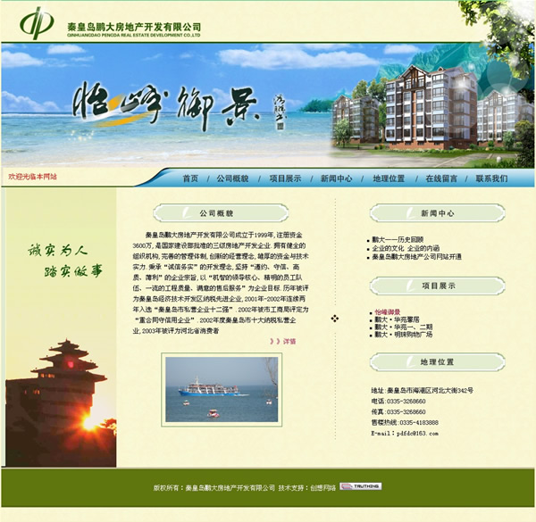 秦皇島鵬大房地產(chǎn)開發(fā)有限公司成立于1999年,注冊資金3600萬,是國家建設(shè)部批準(zhǔn)的三級房地產(chǎn)開發(fā)企業(yè)。擁有健全的組織機構(gòu),完善的管理體制,創(chuàng)新的經(jīng)營理念,雄厚的資金與技術(shù)實力.秉承“誠信務(wù)實”的開發(fā)理念,堅持“遵約、守信、高質(zhì)、薄利”的企業(yè)宗旨,以“機智的領(lǐng)導(dǎo)核心、精明的員工隊伍、一流的工程質(zhì)量、滿意的售后服務(wù)”為企業(yè)目標(biāo).歷年被評為秦皇島經(jīng)濟技術(shù)開發(fā)區(qū)納稅先進企業(yè),2001年-2002年連續(xù)兩年入選“秦皇島市私營企業(yè)十二強”.2002年被市工商局評定為“重合同守信用企業(yè)”.2002年度秦皇島市十大納稅私營企業(yè),2003年被評為河北省消費者