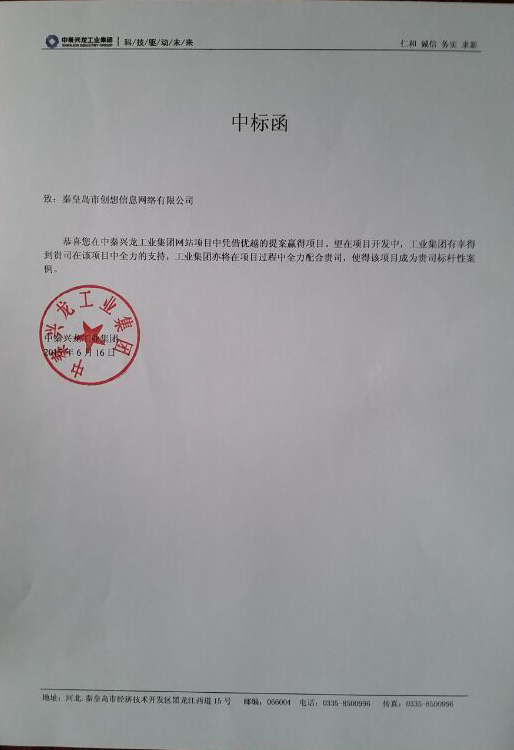 慶祝創(chuàng)想網(wǎng)絡(luò)在中秦興龍工業(yè)集團(tuán)網(wǎng)站的項(xiàng)目中憑借優(yōu)越的提案與技術(shù)實(shí)力,贏得了本次中秦興龍工業(yè)集團(tuán)的官方網(wǎng)站項(xiàng)目!